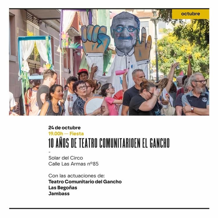 🪇El viernes que viene te esperamos a las 19.00h en el Solar del Circo en la C/Las Armas para celebrar por todo lo alto los 10 años de Teatro Comunitario de El Gancho🎊