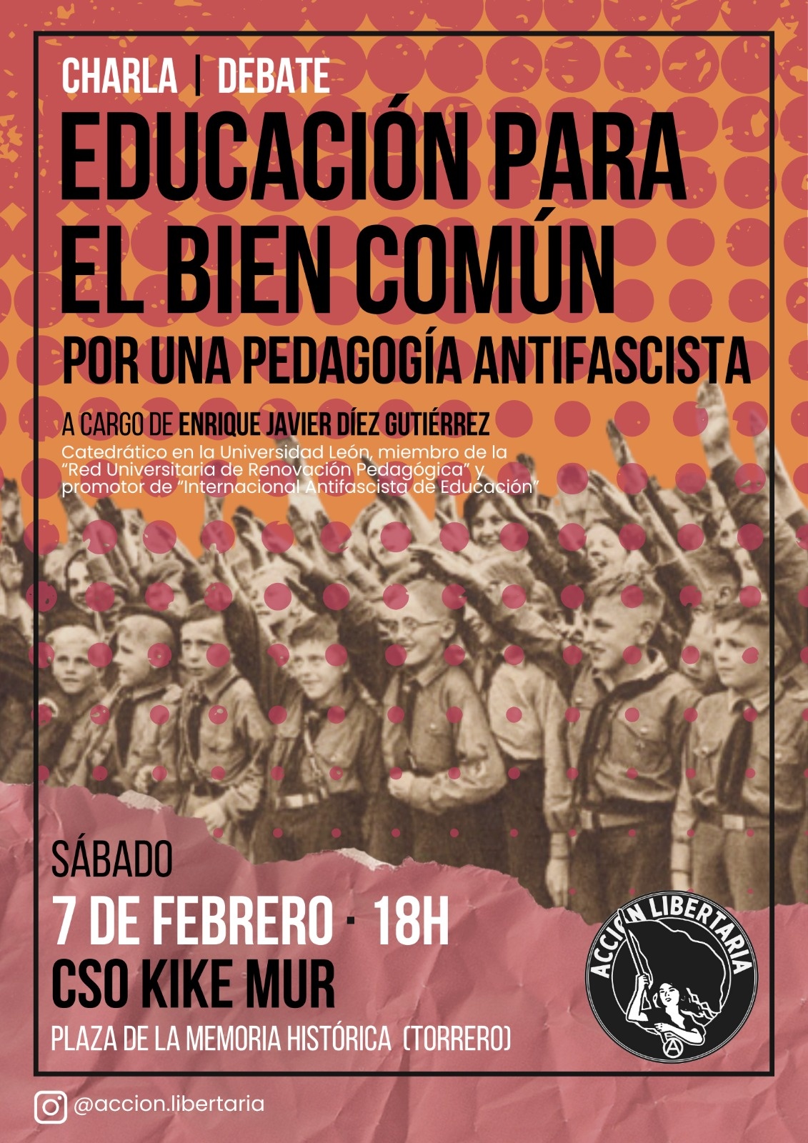 Charla + Debate con Enrique Javier Díez Gutiérrez. Catedrático de la Universidad de León, miembro de la “Red Universitaria de Renovación Pedagógica” y promotor de “Internacional Antifascista de Educación” (IAdE).