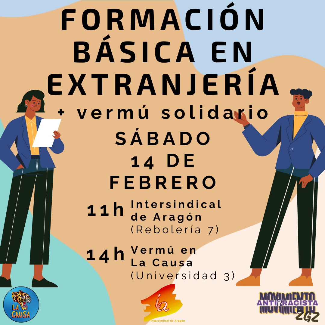 Desde @ia_oficios.varios y junto con el @antirracistas_zgz hemos organizado una formación básica en extranjería para dotarnos de mejores herramientas a la hora de hacer frente a situaciones que vulneran nuestros derechos como trabajadorxs. Además, después de la formación disfrutaremos de un vermú en @lacausazgz