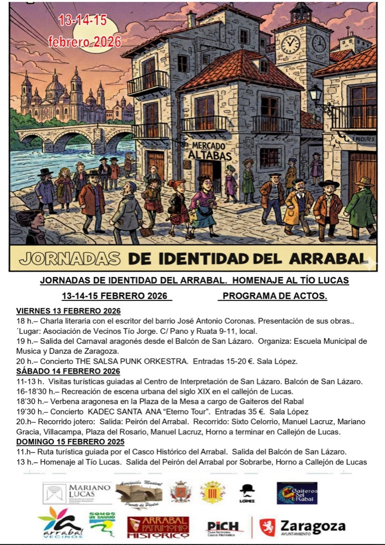 Desde este viernes, y durante todo el fin de semana, 13, 14 y 15 de febrerorealizaremos las Jornadas de Identidad del Arrabal, Homenaje al Tío Lucas con una interesante programación que esperamos sea de vuestro gusto y nos acompañéis: