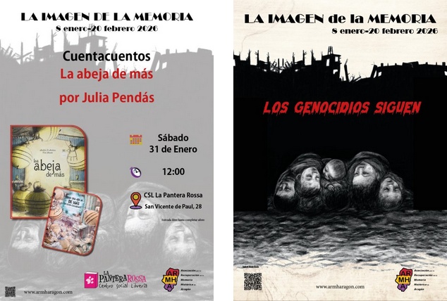 La Imagen de la Memoria de 2026 se compone de diecisiete actos que tienen lugar durante los meses de enero y febrero, del 8 al 20 de febrero. Este proyecto nació en 2018 utilizando exposiciones, conferencias, cine, teatro y otras actividades culturales para reflexionar sobre la memoria histórica, con un enfoque en la Guerra Civil española y la dictadura franquista. Puedes ver todo el programa en: https://www.armharagon.com/viii-edicion-la-imagen-de-la-memoria/