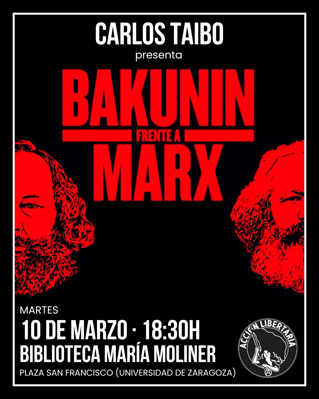 Acción Libertaria trae a Zaragoza este acto de reflexión y debate, una mirada de la mano de Carlos Taibo a los avatares de la Primera Internacional y a un debate que tuvo enormes consecuencias para la unidad de la izquierda.