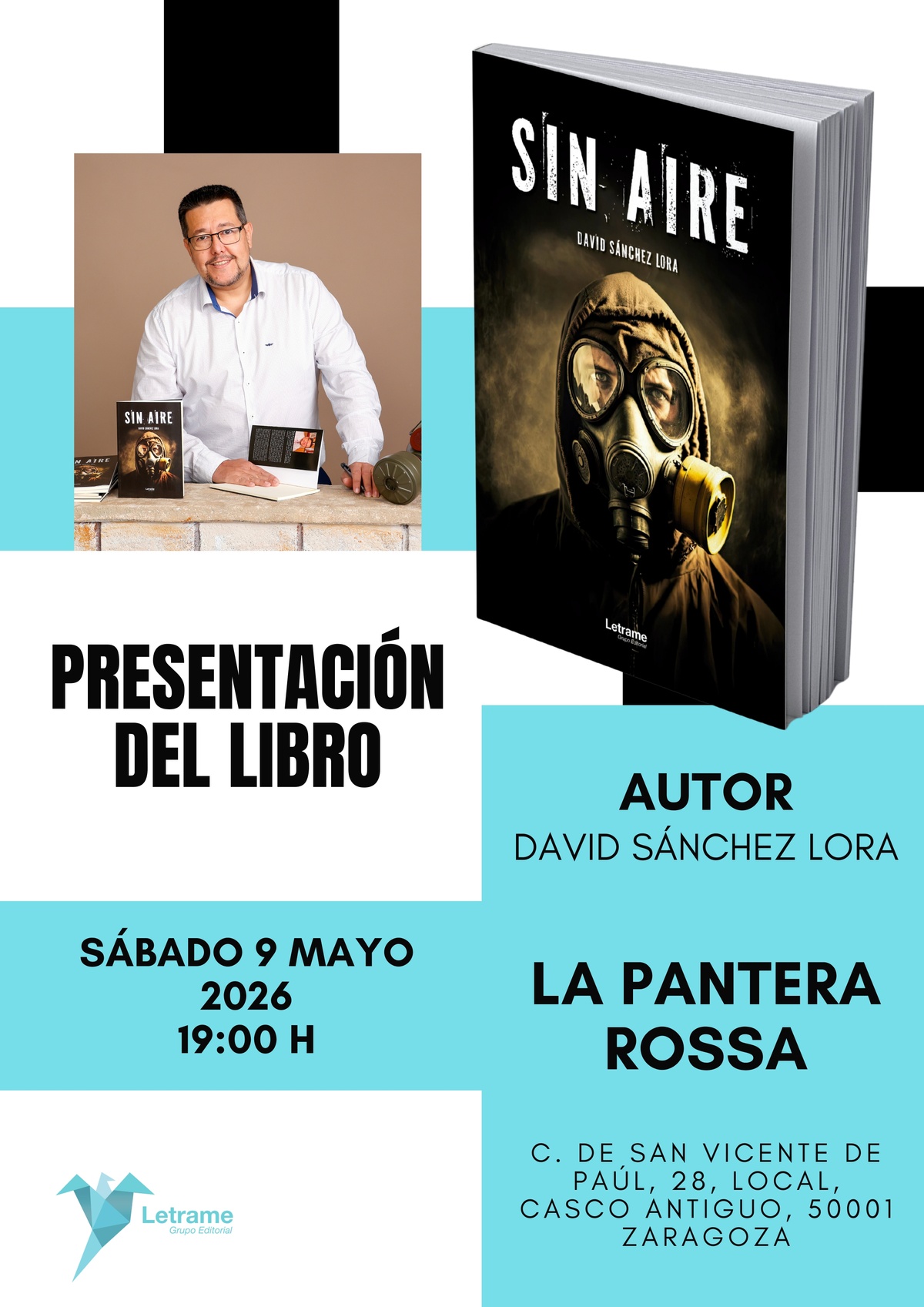 Presentación del libro 'Sin Aire' (Létrame grupo editorial) de David Sánchez Lora, sábado 9 de mayo a las 19.00 horas en La Pantera Rossa con la presencia del autor.